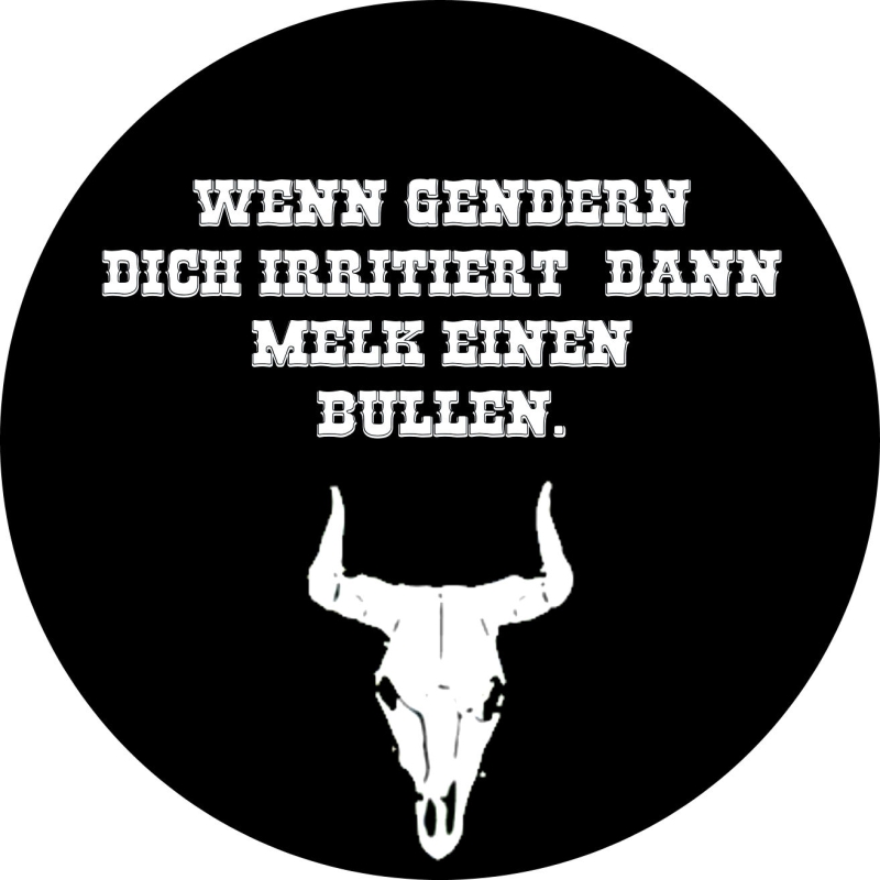 Wenn gendern dich irritiert, dann melk einen Bullen. Motiv 2 Anstecker mit Sicherheitsnadel Ø 25 mm