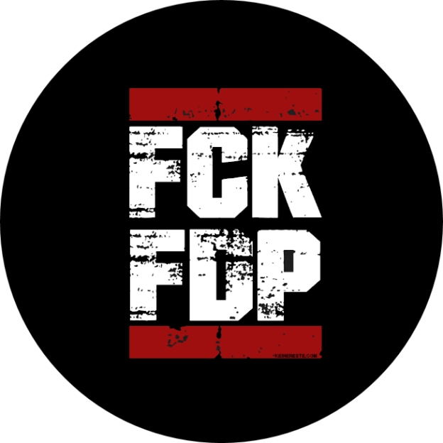 FCKFDP Fuck FDP Anstecker mit Sicherheitsnadel Ø 25mm